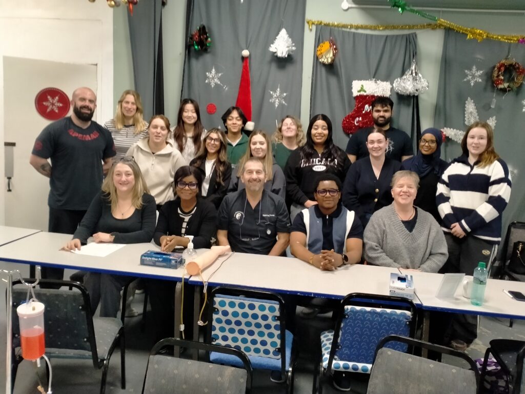 I apologise that my photography skills are not as good as the students’ phlebotomy skills. Especially apologies to Anna whose face has been completely obscured by the sun! I’ll try my Photoshop / GIMP skills later to see if I can fix it at all 🙂